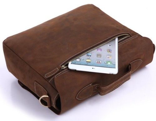 - Feature : 100% Guarantee genuine - excellent Cow leather,5 to 12 days delivery. / Dark brown color / Size approximately 15"L x 4.5"W x 12"H inches (38cm L x 11.5cm W x 30.5cm H) / Single handle approximately 5" inches (13cm) long 2" inches (5cm) drop be able to used comfortably, including an extra adjustable long strap, this purse may do three uses: briefcase, laptop bag, handbag, messenger bag / Bronze tone hardware .Zipper & buckle top closure .Inside is nicely lined with durable fabric, has a fit 15" laptop compartment, and a Wall zippered pocket, and two additional pockets (fits for wallet and mobile telephone pocket) .Brand New