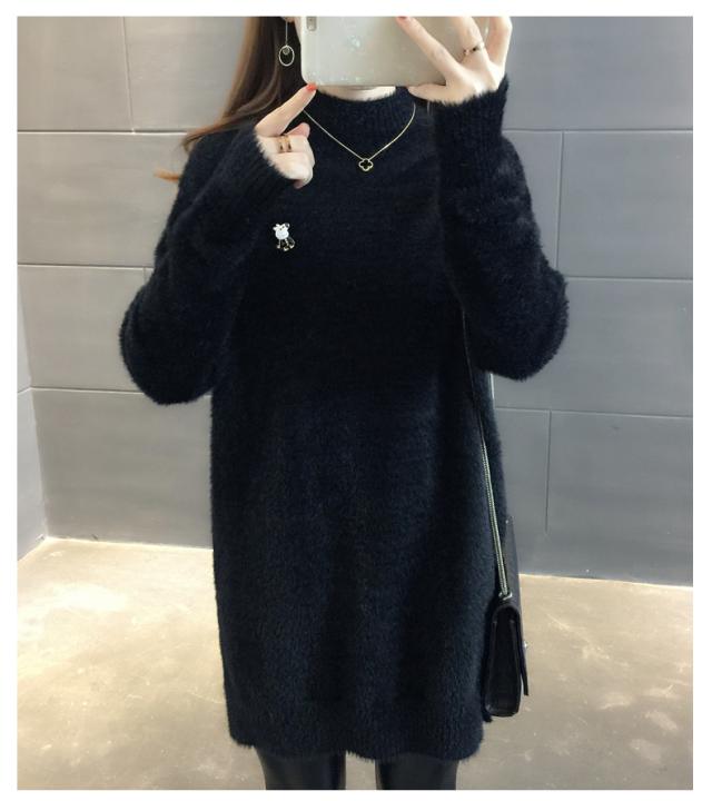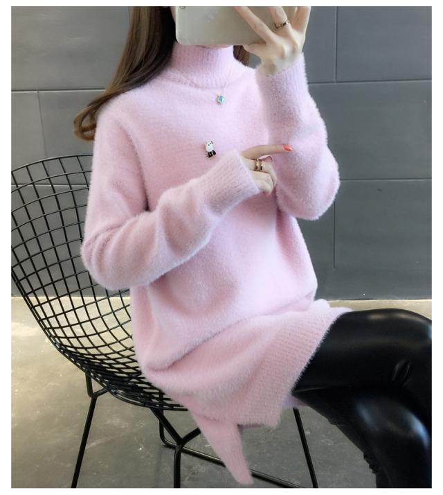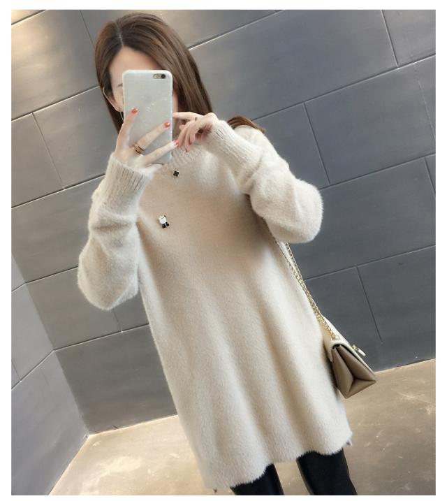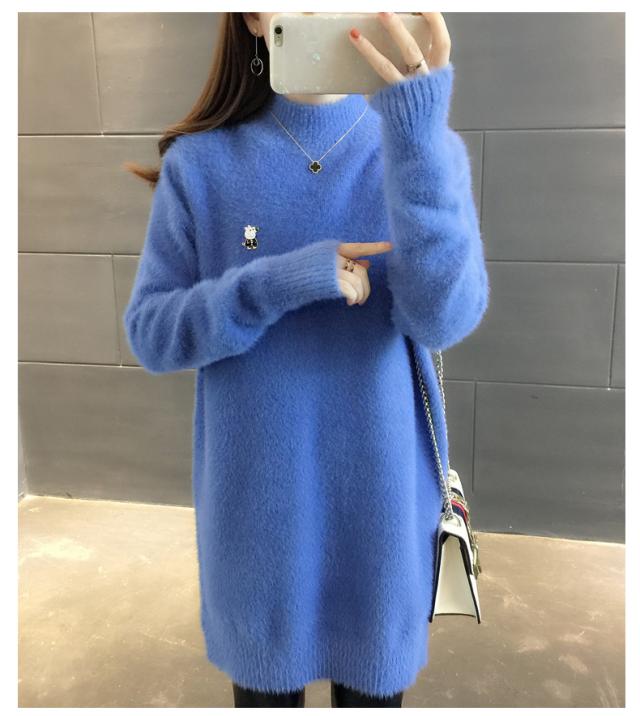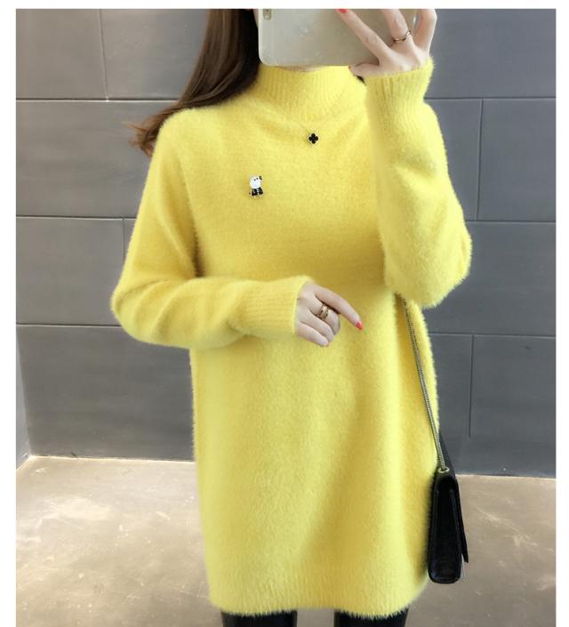 ふわふわモヘアのシンプルミディアム丈セーター♪