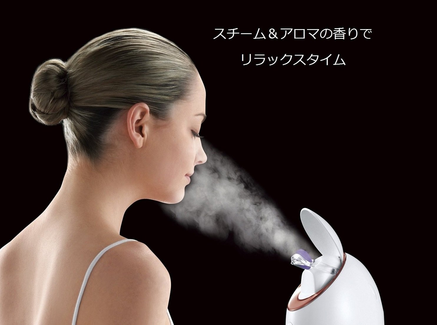 ■ Nano-sized steam permeates the stratum corneum, moisture and firmness on the skin ■ Compact type easy to operate with easy operation ■ Aroma tablet compatible