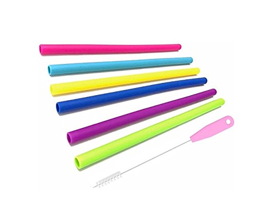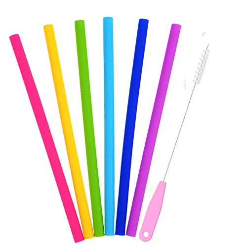 Freshlove Reusable Smoothie Straws (x6) for Healthy Teeth, Drinking Straws Silicone Straight Drinking Straw with Cleaning Brush for YETI/ RTIC Rambler Tumbler 30 Ounce/ 20 Ounce