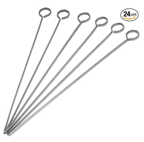 2 Dozen - ChefLand Long Stainless Steel BBQ Skewers, Grill / Barbecue Shish Kebab Kabob Oval Blade skewers