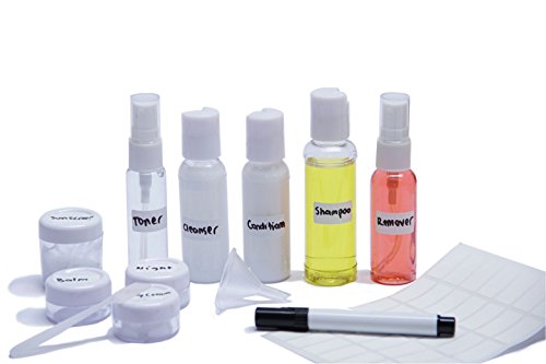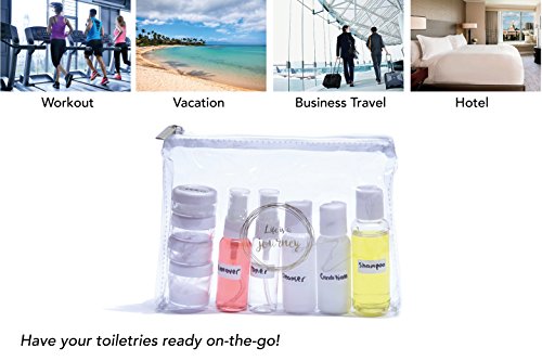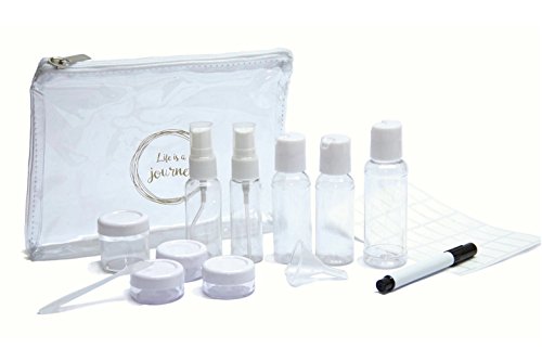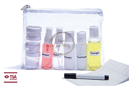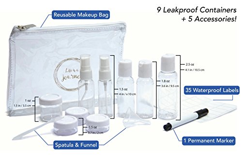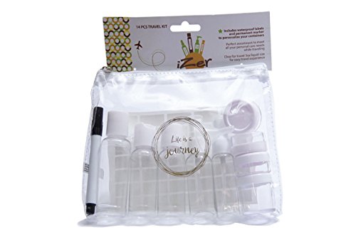iZer Travel Bottle Set - Includes Waterproof Labels & Permanent Marker. TSA Approved. 9 Leakproof Containers for Liquids + Zipper Bag