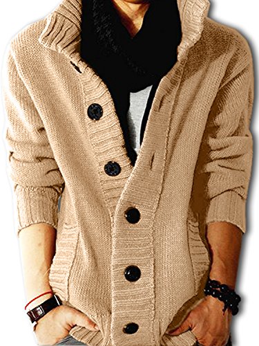 -. Feature : ざっくりとした風合いの素材が見た目も暖かそうなカジュアルニットカーディガンは、首回りを暖かく包むスタンドカラーとかわいらしい大きめボタンが目を引く。 / 羽織れてキレイなシルエットは崩さないのもいいところ。肌寒い時期に大活躍のアイテムだ。 / 襟、袖、裾のリブ仕様、ポケットのワンポイントもデザインを引き締めてくれているボタンの開け閉めで表情が大きく変わってくるのも魅力だ。 / 【M】身幅約49cm / 身丈約65cm / 肩幅約41cm / 袖丈約62cm【L】身幅約51cm / 身丈約68cm / 肩幅約42cm / 袖丈約63cm【XL】身幅約54cm / 身丈約70cm / 肩幅約43cm / 袖丈約64cm / 【ブランド】FTELA【素材】アクリル 100% 【カラー】ベージュ/ブラック/ダークグレー/ネイビー/ワインレッド/ブルー