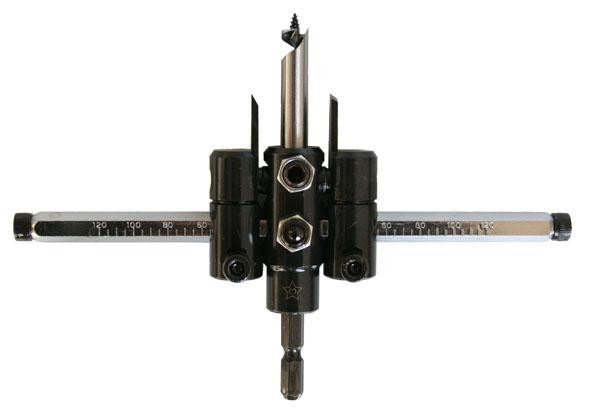充電ドリル・インパクトドライバ対応の6.35mm六角軸です。ホルダーを移動させれば直径30mmから120mmまで穴あけ可能です。穴あけ可能厚さ片側12mm、両側24mmです。薄板の穴あけに最適です。※お届け地域により、別途運賃がかかる場合やお届けできない場合がございますので、お問い合わせ下さい。