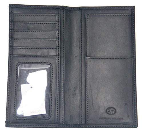 -. Binding : Apparel -. Brand : Genuine Texas Brand -. Department : mens -. Feature : A Beautiful Ornate Cross Concho mounted on a Beautiful Hand Tooled Wallet / Dark brown distressed leather wallet with hair-on inlay and antique silver tone nailheads / Protective ID window 5 card slots Protective ID window, 5 card slots, and a removable picture holder / Two currency pockets, Checkbook and register inserts / Measures approximately 7 1/4" x 3 1/2" -. ProductGroup : Apparel -. ProductTypeName : ACCESSORY -. Title : Custom 3D Belt Co. Ornate Cross Long Rodeo Checkbook Wallet Hair on Hide