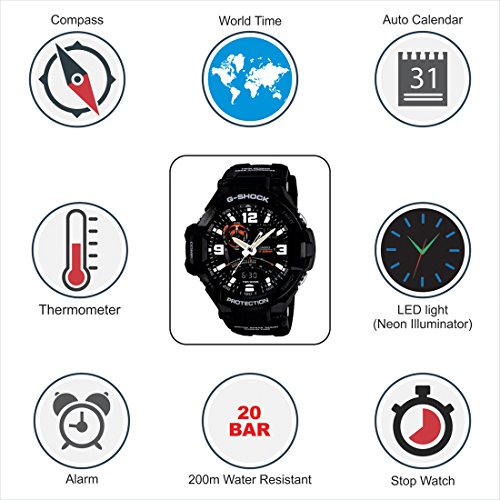 Brand, Seller, or Collection Name:Casio Model number:GA-1000-1ADR (G435) Part Number:G435 (G435) Item Shape:Round Dial window material type:Mineral Glass Display Type:Analog Clasp:Buckle Case material:Stainless Steel Case diameter:5.1 centimeters Case Thickness:16 millimeters Band Material:Resin Strap Band width:26 millimeters Band Color:Black Dial color:Black Item weight:9.60 Ounces Movement:Quartz