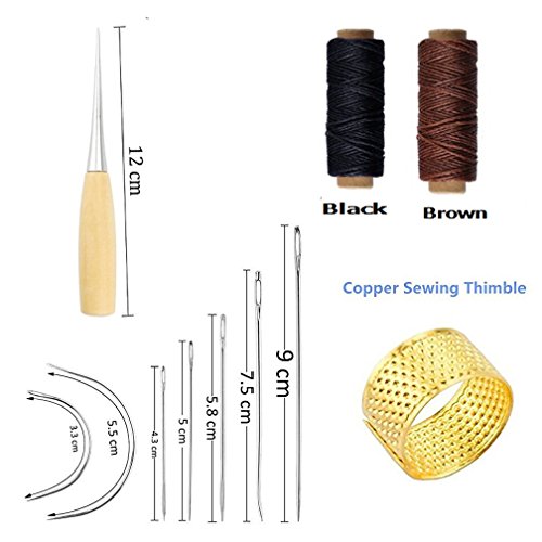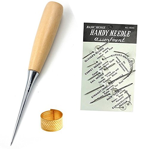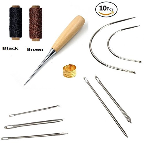 - Leather sewing needles- Come in a variety of sizes and shapes needles with stitching awl and sewing thimble