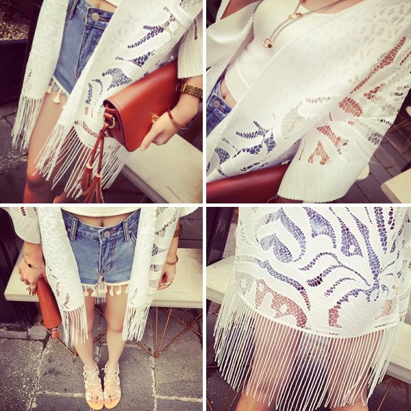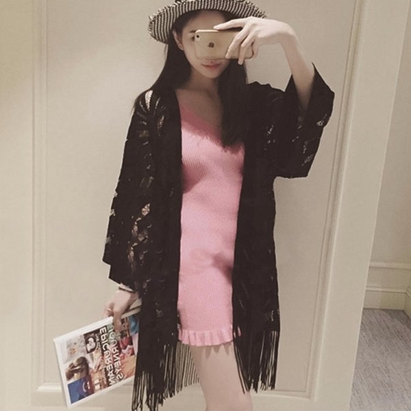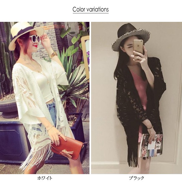 商品名ゆったり薄手 シースルーレース フリンジカーディガン