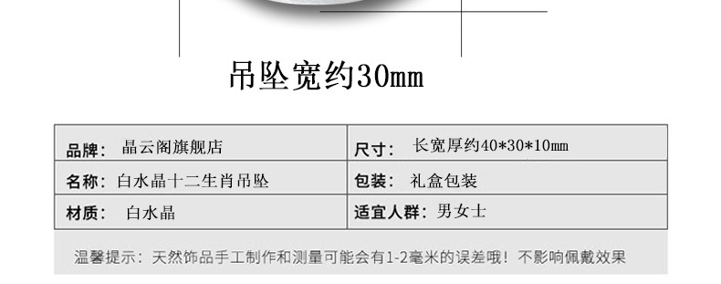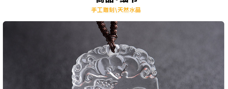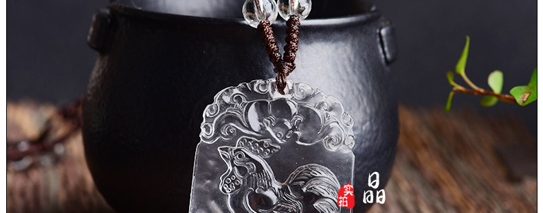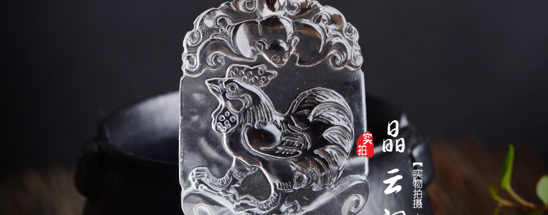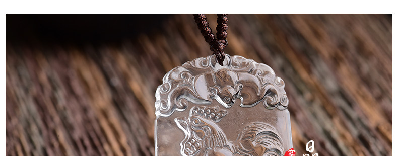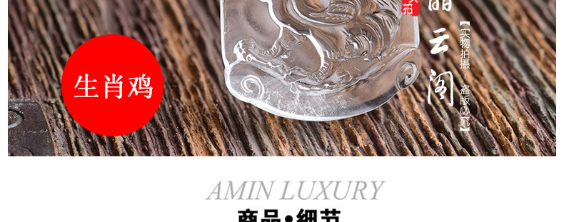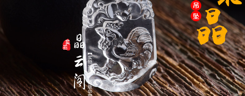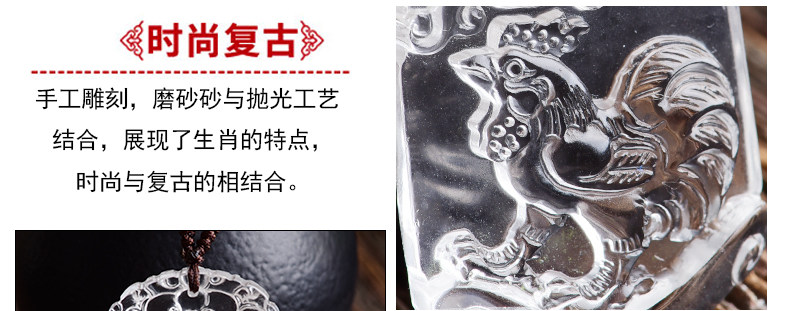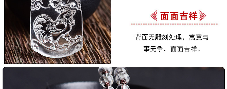开光天然白水晶十二生肖属鸡吊坠 男女款项链挂坠情侣款饰品挂件