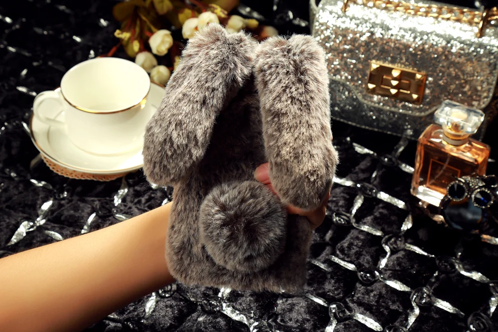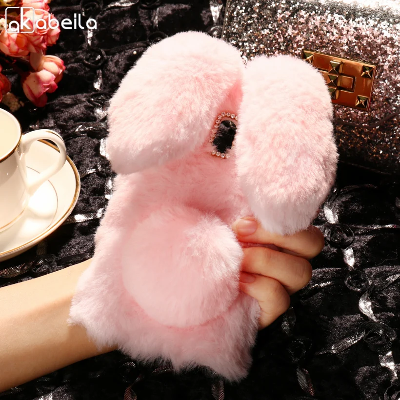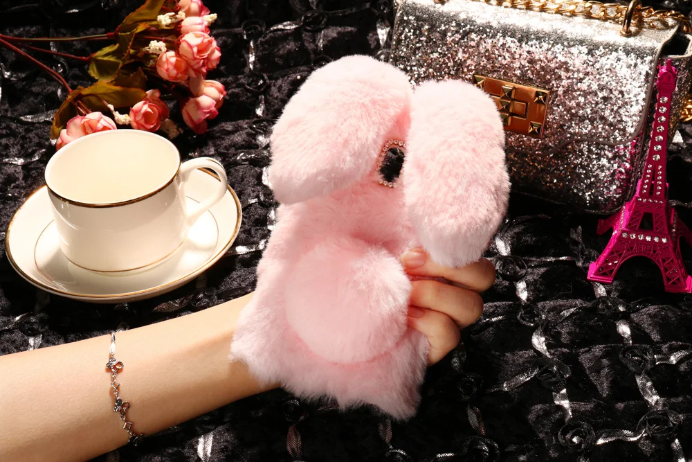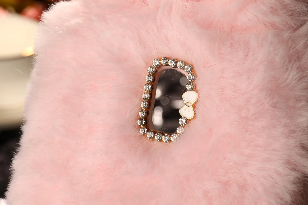Features:Cute Rabbit Fur Bowknot Dirt-resistant Capa Para Coque Capinha Funda