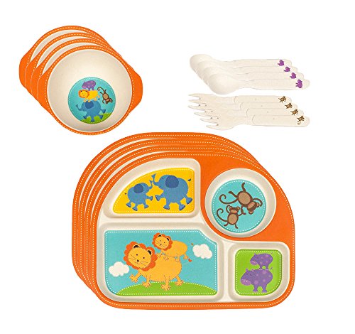 Bamboozle Tiny Footprints Set of 4 Safari Friends Dinner Sets, 24 Piece