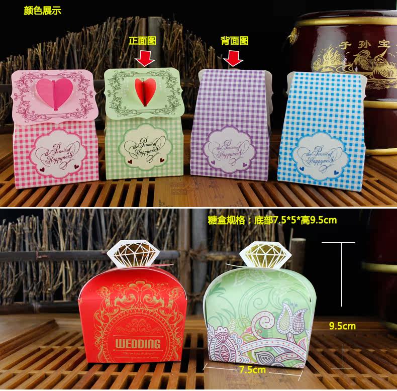 Price is the price of 50, excluding Ribbon Exquisite small candy boxes, using high-quality 250 grams of white card material, printed with bright colors! Dimensions shown below