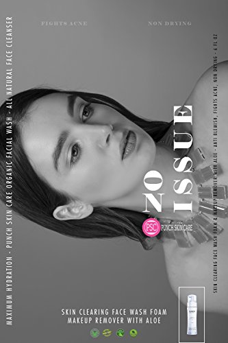 Maximum Hydration - PUNCH Skin Care Organic Facial Cleanser - All Natural Foam & Makeup Remover with Aloe - Anti Blemish, Fights Acne, Non Drying - 6 fl oz