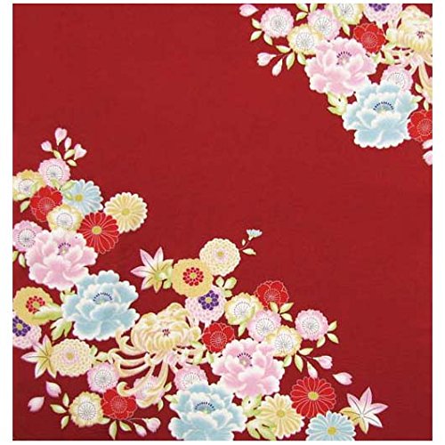 -. Title : アンドウ 遊々庵縮緬二巾風呂敷 菊牡丹 Y-48 赤 Y-48