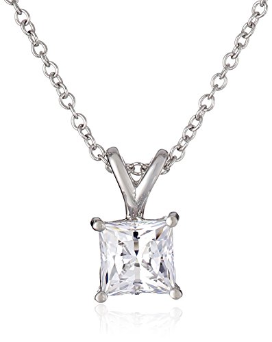 Platinum-Plated Sterling Silver Swarovski Zirconia 1 ct Princess Solitaire Pendant