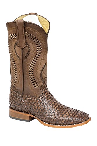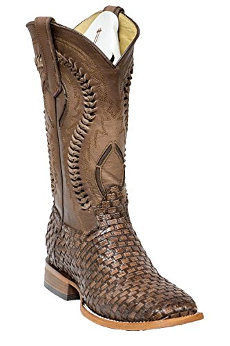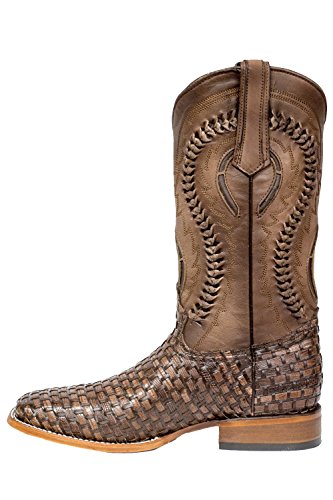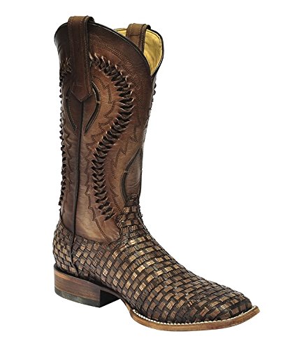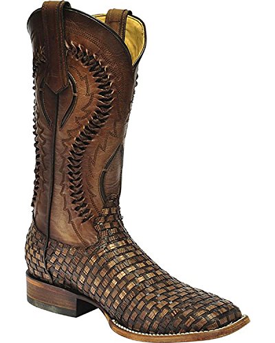 Corral Men's Exotic Brown Lizard Braided Vamp Wide Square Toe