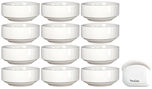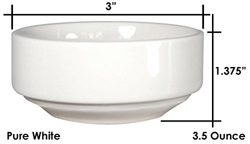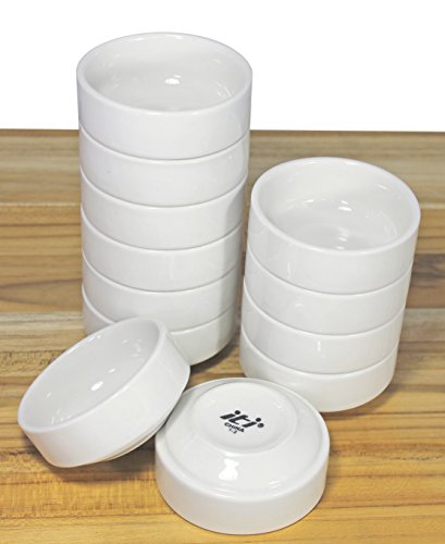 ITI Ceramic Stackable Baking Ramekins / Condiment Sauce Cups with Pan Scraper, 3.5 Ounce (12-Pack, Pure White)