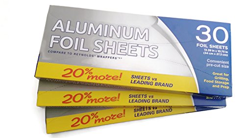 Aluminum Foil Sheets, 30 Sheets 13.39" X 10.75" (3) Pack