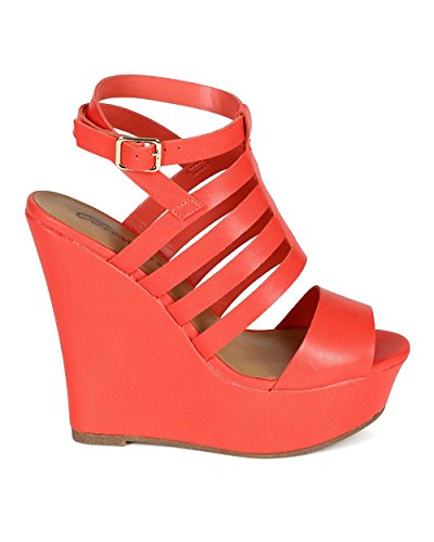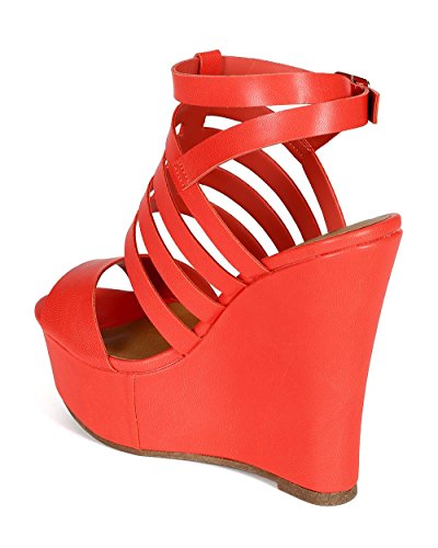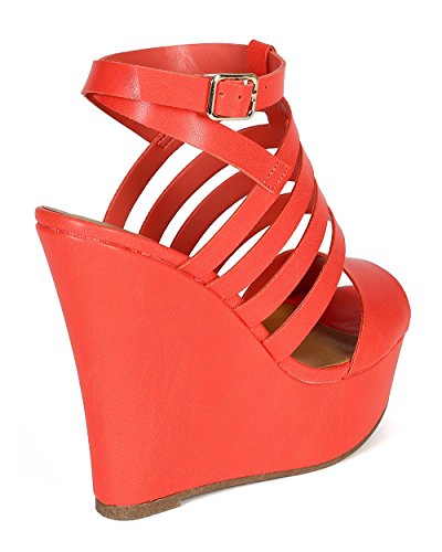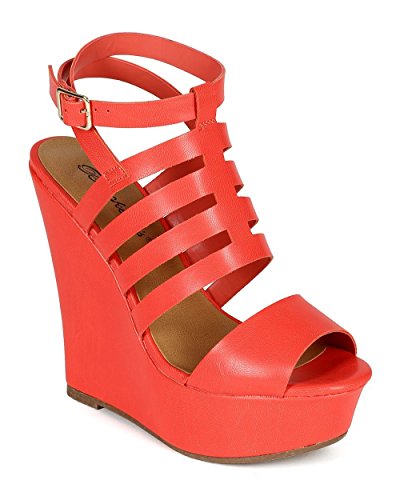 Studio : Breckelles Publisher : Breckelles Binding : Apparel Product Description Designed with leatherette throughout, peep toe, caged strappy upper, ankle strap with adjustable buckle, platform with wedge heel, completed with padded insole for comfort! 0