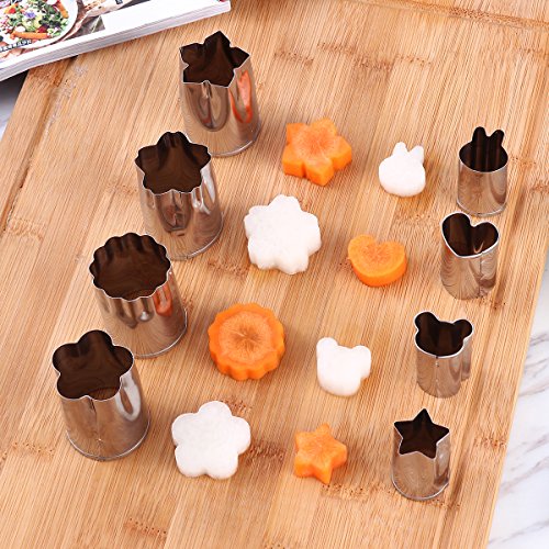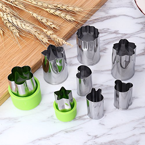 - Brand: OUNONA. - Color: As shown in the picture. - Material: Stainless steel and plastic. - Package size: Approx. 23.5 x 12.3 x 12.3cm/ 9.25 x 4.84 x 4.84 inch (LxWxH). - Includes 8pcs vegetable and cookie molds and 6pcs plastic bread cutters and 2pcs handles. - Sandwich stamps include dinosaur, puzzle pieces, dolphins, star, butterfly and triangle. Smaller cutters for vegetables and cookies are several flowers, mouse, heart, bunny and star. - Made of food grade plastic and top-class stainless steel, safe and non-toxic. - Not easy to deform and good for long-term use. - Create good-looking shapes to make your food more interesting, share joys with your family and friends. - Easy to use, clean and store. - Perfect for sandwiches, vegetables, fruits, cookies, bread and cake, etc. Package Including 8 x OUNONA Stainless Steel Vegetable Molds 6 x Plastic Bread Cutters 2 x Handles 0