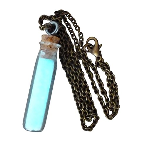 -. Brand : umbrellalaboratory -. Color : silver -. Department : unisex -. Feature : steampunk glow in the dark necklace / Rare Handmade / Tool for any crazy time traveler / Pendant/bottle is roughly 45mm high and is filled with magical glow in the dark powder. / Necklace chain is 18" long. -. Label : Umbrella Laboratory -. Manufacturer : Umbrella Laboratory -. PackageQuantity : 1 -. ProductGroup : Apparel -. ProductTypeName : ADULT_COSTUME -. Publisher : Umbrella Laboratory -. Size : small -. Studio : Umbrella Laboratory -. Title : Steampunk Necklace Magic Fire Fairy Angel Dust