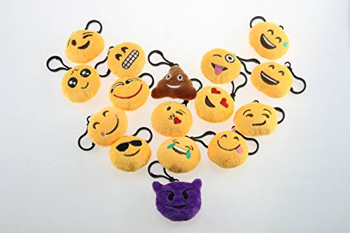 RTG Essentials ★16 Pack★ Emoji Plush Keychain set, Kids Birthday Party Supplies Favors, Mini Plush Pillows, Backpack Clips, Goodie Bag Fillers
