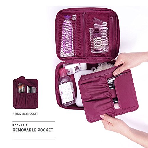 -. Feature : High quality nylon fabric, Use of portable, waterproof wear resistance, high elasticity / More mesh bag design, toiletries stored separately / One main interior compartment, there is a removable pocket inside, which can classify to storage your personal small stuffs / Great for toting makeup, hair accessories, shaving tools, and other small items / 9.5"L*7.5"W*3.5"H