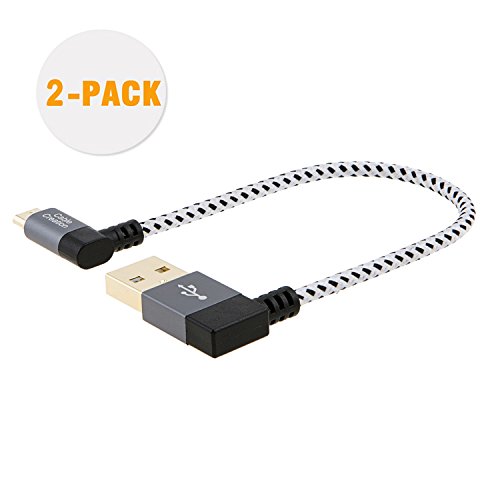 CableCreation Short (0.5ft) [2-PACK] 90 Degree USB 2.0 A to Micro USB B Cable, Double Angle-Dual Angled Short Micro USB Cable with Aluminium Case,15cm, Space Gray
