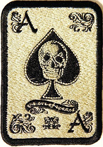 -. Title : Skull Ace Card Gambling Winner Playing Card Casino Las Vegas Logo Lucky Biker Jacket T shirt Patch Sew Iron on Embroidered Badge Sign Costum