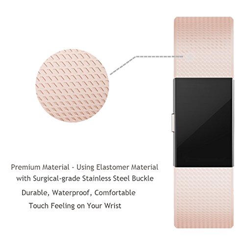 -. Feature : Personalize your Fitbit Charge 2 Heart Rate by these refined replacement bands with special designs and various colors / Made of high quality TPU and TPE material, the Charge 2 bands are soft, durable and comfortable to wear / With watch lugs on both ends, the replacement band can lock onto Fitbit charge 2 interfaces precisely and securely. Easy and direct installation and one button remove / Easy to resize with stainless steel buckle clasp: Large Size, fits 6.7"-8.1" wrist; Small size, fits 5.5"-6.7" wrist / One year warranty: Hassle free replacement or money back during the warranty