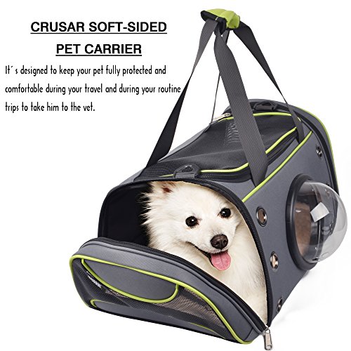 Studio : Crusar Publisher : Crusar Binding : Misc. Product Description Crusar soft-sided pet carrier is designed to keep your pet fully protected,secure and comfortable during your travel by car,train,plane and during your routine trips to take him to the vet.