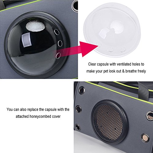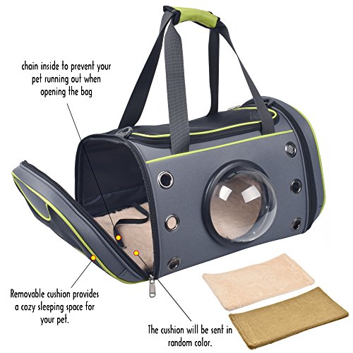 Humanization design ?The paddled carrying handle and adjustable shoulder strap with the thicken design will lighten your burden and keep you comfortable. ?The fleece cushion can soak up drool,barf and urine and can be detached to separately clean,which may eliminate your concerns. ?There are also 2 shock absorbing rubber feet to provide softer landing for your pet and prevent sliding on non flat surfaces.