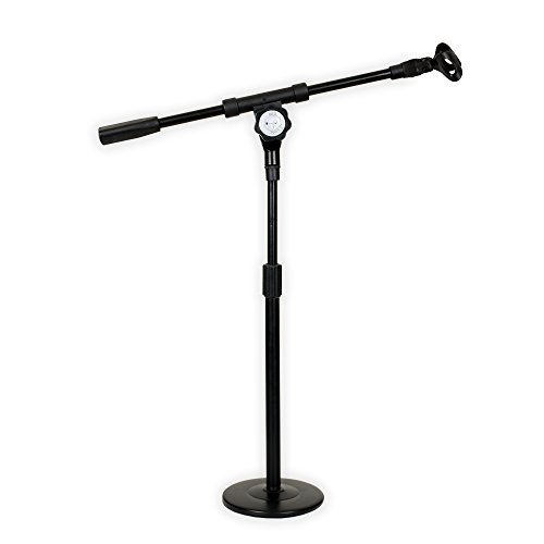 -. Feature : Podium Pro MS4 pro audio tabletop boom mic stand and MC2 mic clip, adjusts from 17.5" to 26" high with weighted base / 17" boom slides 12.75" from center pole and secures with tightening knob, standard 5/8" threaded top accepts most mic clips / 5" round black weighted base for stability, Podium Pro MC2 "U" style EZ mic clip included, designed and engineered in the USA / Search MS4 for this stand without a mic clip, search MS4MC1 for this stand with a clamp mic clip / Use for DJ, PA, karaoke, live sound, studio, drum kit, podcast, this listing and P.R.Ice is for 1 desk mic stand and 1 mic clip