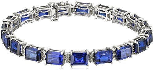 -. Binding : Jewelry -. Brand : Amazon Collection -. Department : womens -. EAN : 0696736772061 -. Feature : A single strand of emerald-cut synthetic sapphires lends a vivid pop of blue to this bracelet, while small genuine diamond accents add a touch of understated sparkle. / Box clasp with tongue and safety / Crafted in .925 sterling silver / All our diamond suppliers confirm that they comply with the Kimberley Process to ensure that their diamonds are conflict free. / Imported -. Label : Amazon Curated Collection -. Manufacturer : Amazon Curated Collection -. Model : 75979/STGSIL/I7/XS0/SILBT/7.5INCH -. MPN : Amazon Curated Collection -. PartNumber : Amazon Curated Collection -. ProductGroup : Jewelry -. ProductTypeName : FINENECKLACEBRACELETANKLET -. Publisher : Amazon Curated Collection -. Studio : Amazon Curated Collection -. Title : Sterling Silver Emerald-Cut Created Blue Sapphire with Diamond-Accent Tennis Bracelet, 8" -. UPC : 696736772061