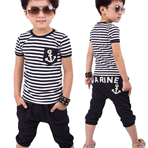-. Title : Ecosin New Summer Children Clothing Boys Navy Striped T-shirt And Pants Suits
