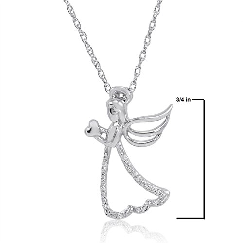 Sterling Silver Diamond Angel with Heart Pendant-Necklace on an 18 inch sterling silver chain. This contains 10 genuine diamonds.