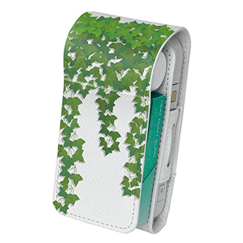 iQOS 아이코스 전용 레더 케이스 【기본모델 / 신형 2.4PLUS 양대응】 담배 전용 케이스 커버 합가죽(껍질) 커버 수납 iCOS iKOS 식물 심플 녹색 00