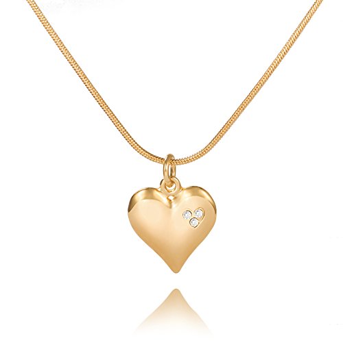 -. Title : Shevalues Heart Necklace Fashion Choker Necklace Polished Gold Rhinestone Pendant Necklace for Women 17"