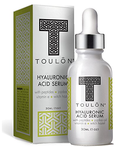 Organic Hyaluronic Acid Serum for Face with Natural Peptides, Pure Jojoba Oil, Vitamin E & Witch Hazel; Best to Build Collagen & Reduce Wrinkles & Age...