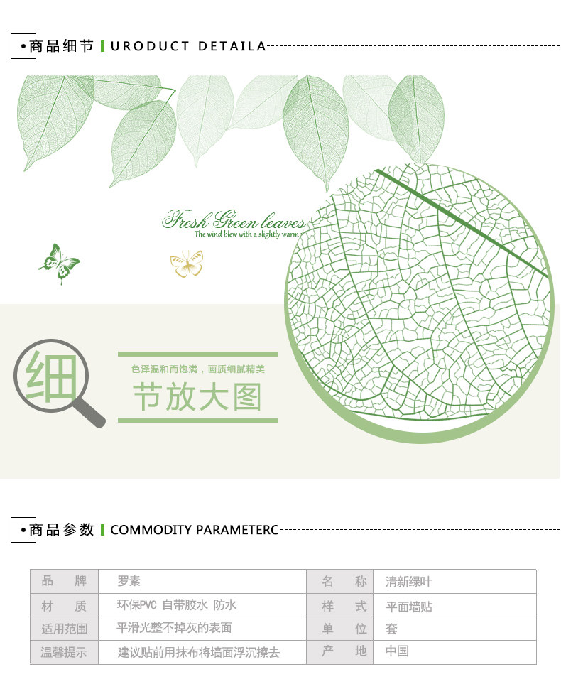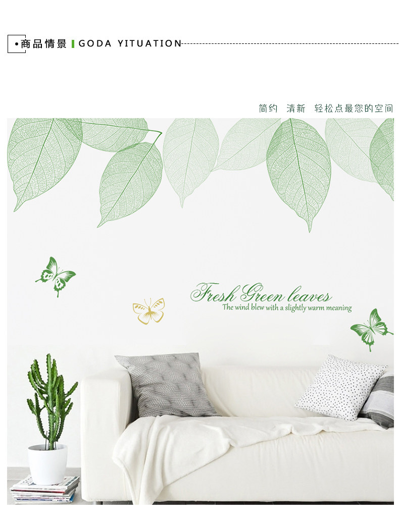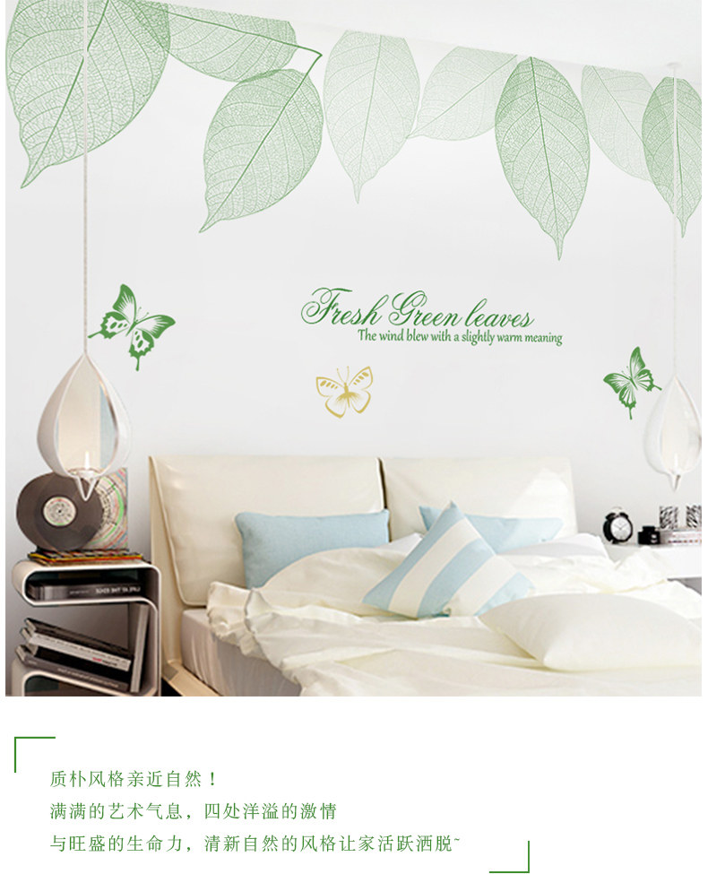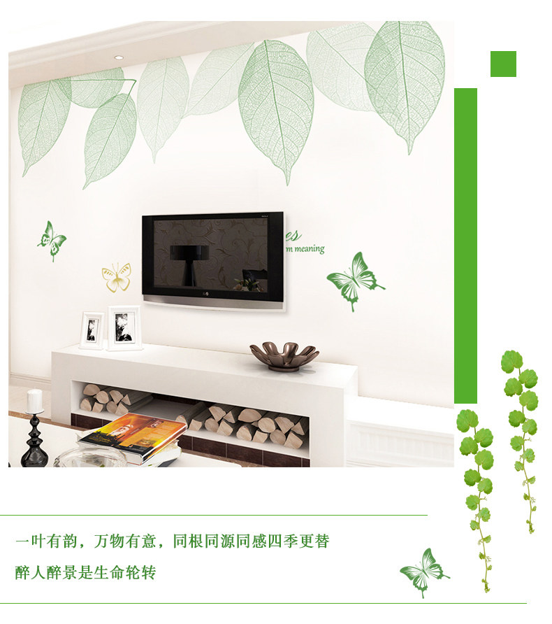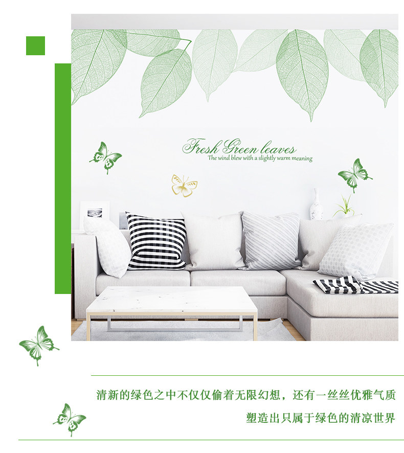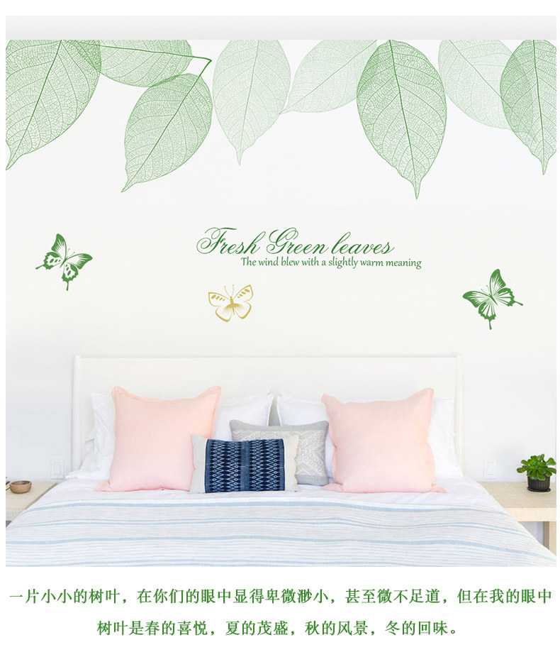 清新绿叶墙贴卧室温馨墙纸自粘贴画客厅沙发电视背景墙壁装饰贴纸