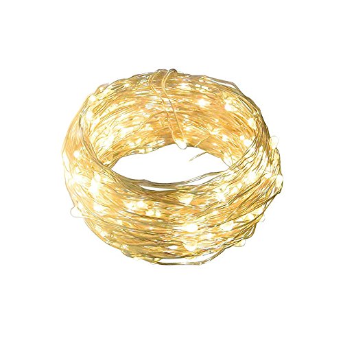 33 Feet 100 LED Portable Waterproof Indoor Outdoor Decorative Copper Wire Fairy String Lights Battery Operated for Patio Wedding Seasonal Holiday (Warm White (None Remote))