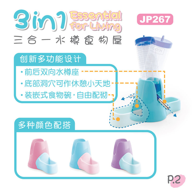 Features: This product's selling point is easy to install and disassemble, with avant-garde design and contains three different functions, can also take into account the preferences of the owners to make a different color matching, but also in accordance with the different assembly Method placed in different corners of the cage, thereby increasing the three-in-one water bottle food room on the use of convenience and flexibility, it is indispensable to small animals, the owner of the grace.