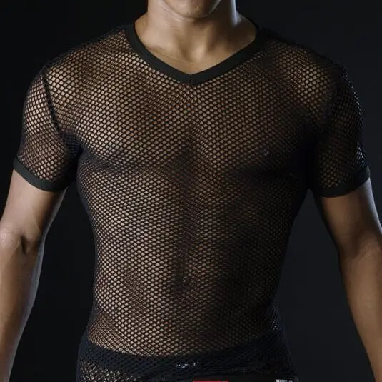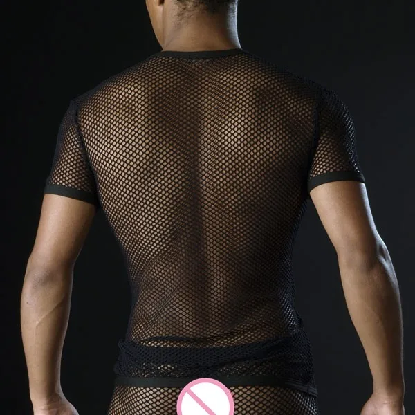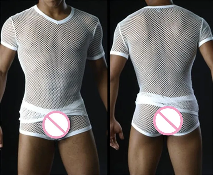 Description 1:Hot Men T Shirts Transparent Mesh See Through Tops Tees singlet