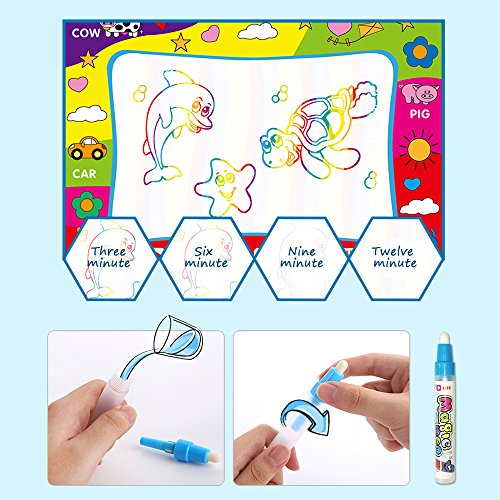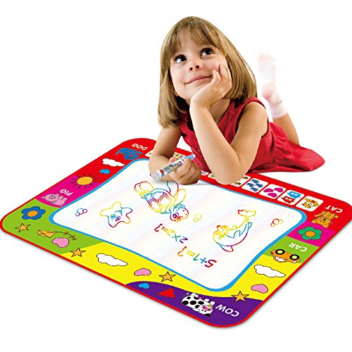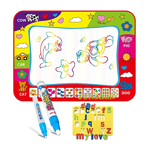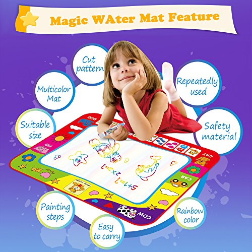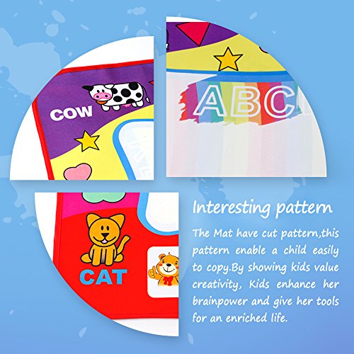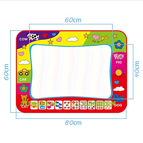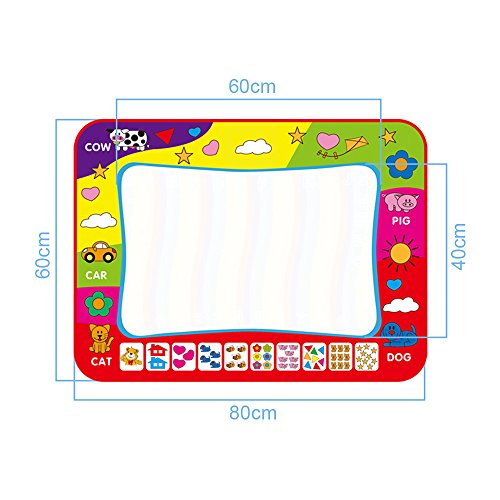 Features: 1.For age children (Above 2 years old), Writing graffiti canvas blanket baby child educational toys. 2.NEW DESIGN:Compared with the old 4 color mat,our doodle mat used rainbow color swatches,the color contrast more beautiful. 3.FINE WORKMANSHIP:We use environment protection materials without harms to skin. With fine workmanship, strict quality. 4.RATIONAL DIMENSIONS:31.5x23.6in size should be suitable for most kids.It's let the kids can develop own imagination dint well. 5.REUSABLE:The water Pen add water,don't need ink.When you holding the water pen on the mat painted with the pattern of all,please Wait for 5-6 minutes,can you repeat it Note: The pen: Before using, it is recommended to put the head of the pen into the water to soak for 0.5-1 hours, then fitted it with water to use, and the reason for d is mainly due to the head of pen has no fully expanded. The mat: To scrubbing after each use it.Because there is a lot of dust after use. Material: Water-resistant Nylon, Polyester Size: 31.5 x 23.6in (80 x 60cm) Package Include: 1x Doodle Mat 2x Magic Pens 1x Letter Seal 0 |