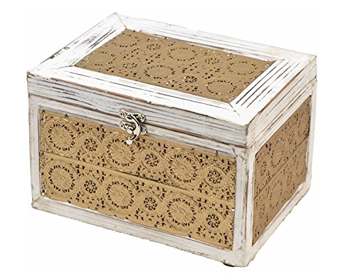 Concepts Recipes Box with Wood Lace & Metal Locking Clasp 6"x9" White And Gold Metal