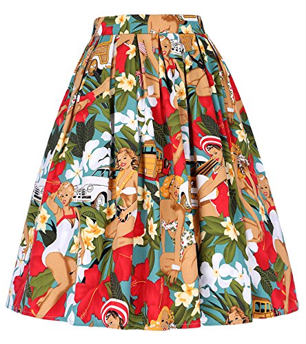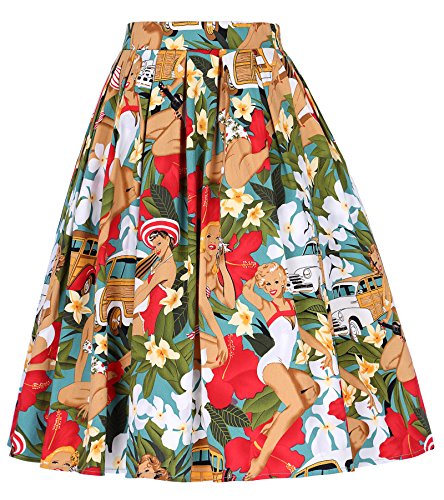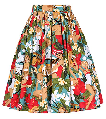 Title : GRACE KARIN Women's High Waist A-line Pleated Skirts,Small,Floral 401-1