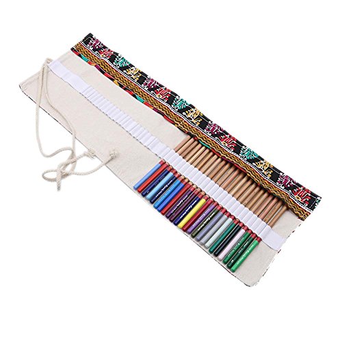 Art Pencil Wrap Canvas Travel Drawing Coloring Pencil Roll Organizer Cases Holders Bag wrap for Artists Painter Adults Students Kids Girls 72 Slot With a Pencil Extender