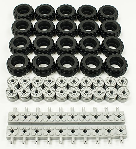 Perfect for Lego vehicle projects. 60 total Lego pieces are enough to make 5 vehicle axle, wheel and tire assemblies.