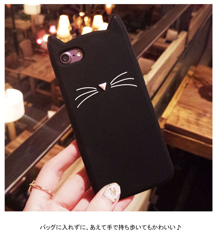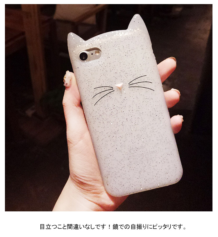 | 猫型iPhoneケース。猫好きにはたまらないケースです。バッグに入れずに、あえて手で持ち歩いてもかわいい♪目立つこと間違いなしです!鏡での自撮りにピッタリです。 | |