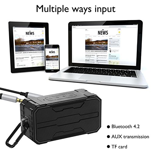 Powerful Audio Technology Connect via Bluetooth 4.2 enjoy an easy simple connection. Up to 33 ft away from any Bluetooth enabled device including, Tablets, Smartphones, IPads, iPhones, Notebooks, PC's and More.
